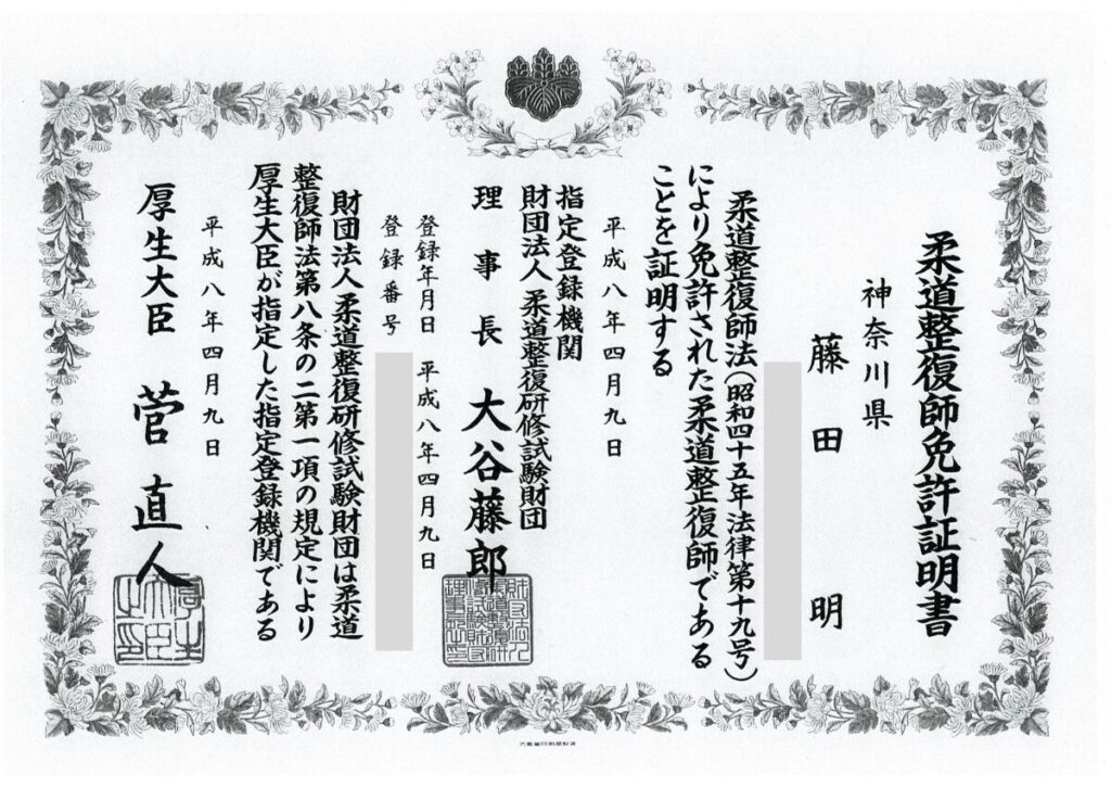 フジタグループには、柔道整復師の国家資格を持つスタッフが在籍しています